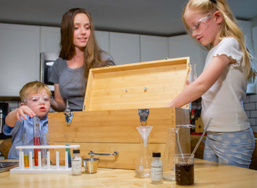 The Quantum Chemistry Set includes the glassware, chemicals, and lab apparatus required to perform the most interesting and exciting chemical reactions. We have spent months researching, testing, and carefully selecting fascinating reactions to include in the set. All of this research has been compiled in our Experiments Book, which includes procedures, safety measures, and scientific explanations for 51 experiments.