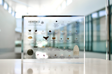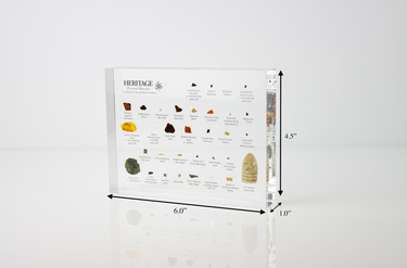 The Heritage Museum is a collection of artifacts from the history of the world. The specimens have been specifically selected and curated for the museum. From meteorites and dinosaur fossils to barbed wire from D-Day, the personal museum includes artifacts from some of the most important events in history. Each artifact is carefully prepared for inclusion. The samples are then professionally cast in acrylic. The museums are polished to a glass-like surface and will last for generations with proper care. After achieving the first successful flight in a plane, Orville Wright stated, "We were lucky enough to grow up in an environment where there was always much encouragement to children to pursue intellectual interests; to investigate whatever aroused curiosity.” That is exactly what the Heritage Museum is intended for! Whether for yourself, for others, or to share with children, this personal museum is an exceptional learning tool. Each artifact in the museum is authentic and has inherent historical importance. The artifacts span not only the history of the world but also the history of the universe.
