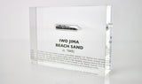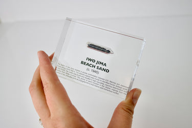 This exquisite display houses a glass ampoule which encapsulates authentic sand from the shores of Iwo Jima Beach, the very site of the historic Battle of Iwo Jima during World War II, which began on February 19, 1945.