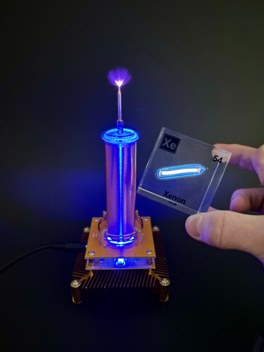 This mini-Tesla coil is perfect for experimenting with electric fields. It pairs perfectly with our noble gas display or any of our halogen gas element cube displays. This tesla coil is also outfitted with an auxiliary port which allows you to play music using the power of electricity! Try out the interchangeable tesla tips that come with it for even more fun.